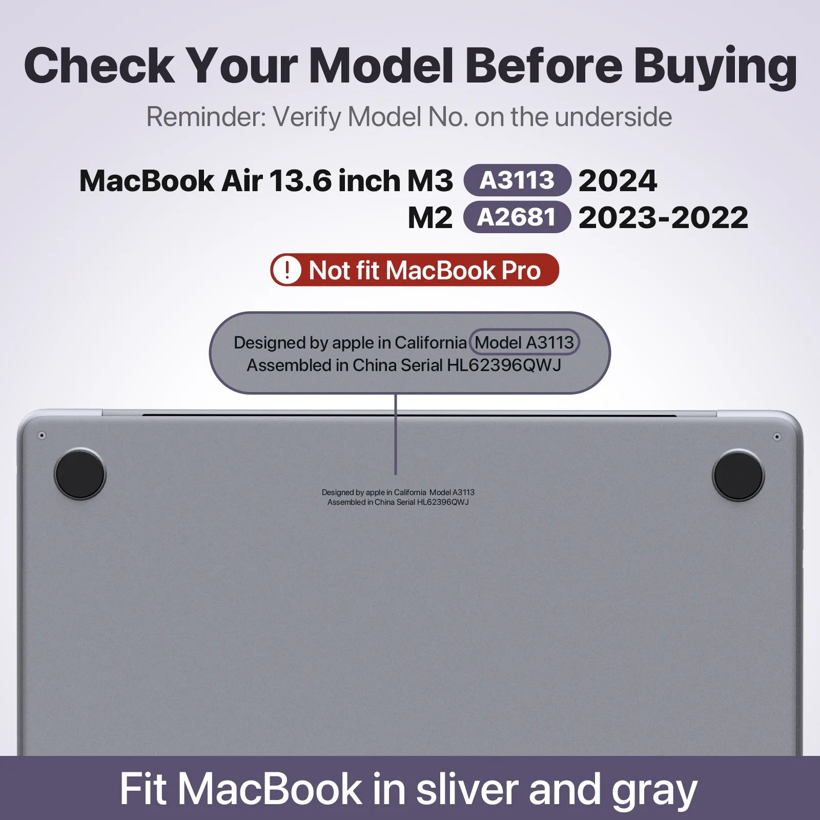 Soonjet for MacBook Air 13.6 inch Case Crystal Purple
